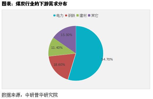 煤炭行业的下游需求主要集中在电力(约占54%)、钢铁(约占18%)和建材行业(约占12%),其余主要为民用煤和煤化工等其他行业。