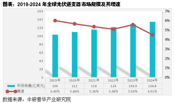 随着光伏市场需求稳步增长,以及欧美和新兴市场光伏产业迎来快速发展,全球光伏逆变器行业规模持续增长,预计2024年全球光伏逆变器行业市场规模达到136.8亿美元,同比增长4.51%。
