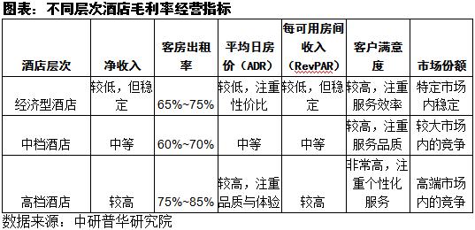 (2)不同层次酒店毛利率分析