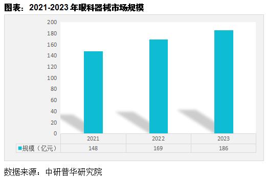 眼科医疗器械市场规模逐年递增。眼科医疗器械行业市场规模2023年达到186亿元,目前市场规模正在不断扩大。随着人们对眼科健康的重视程度不断提高,以及眼科医疗技术的不断进步,眼科医疗器械市场将迎来更加广阔的发展空间。