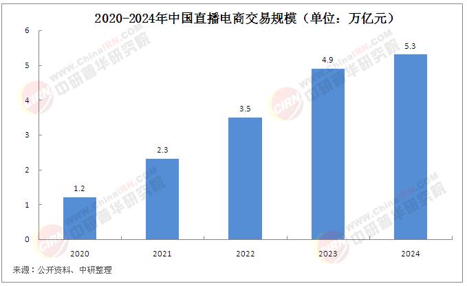 数据显示,近年来中国直播电商市场规模持续扩大。“电数宝”电商大数据库显示,2024年直播电商交易规模达到53256亿元,同比增长8.31%。这一快速增长得益于直播电商模式的不断创新、消费者购物习惯的转变以及移动互联网技术的普及。