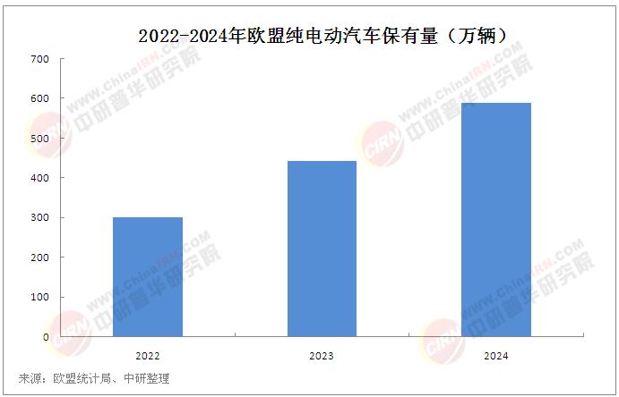 2024年欧盟纯电动汽车保有量为587万辆