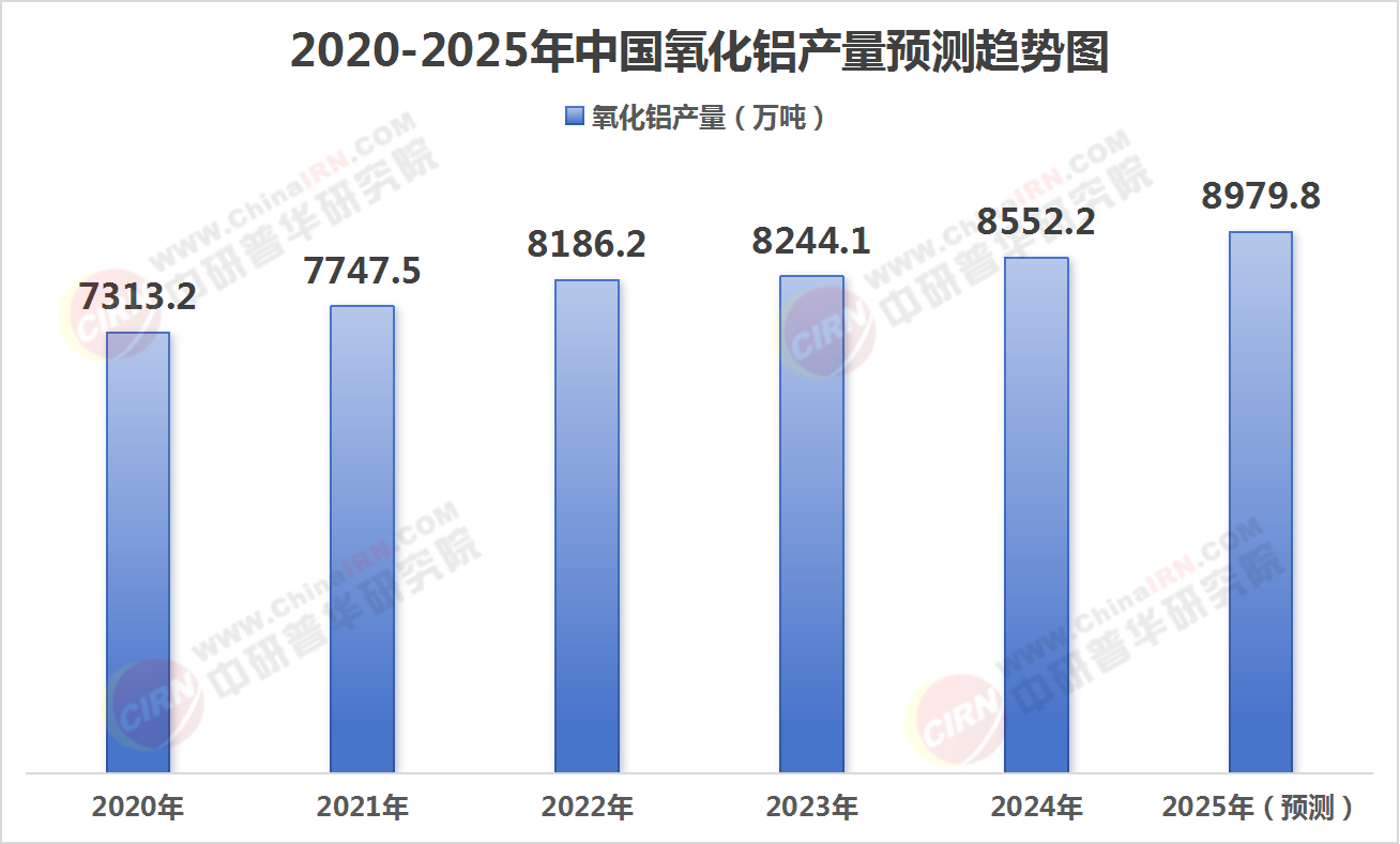 对于未来两年的预测,可以看出氧化铝产量将继续保持增长。到2024年,预测产量将达到8552.2万吨,而到2025年,预测产量将进一步增加至8979.8万吨。这表明中国氧化铝产业在未来几年内仍将保持强劲的发展势头。
