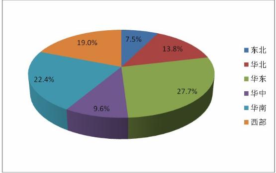 图表:2019年中国智能学习灯行业需求地域分布结构