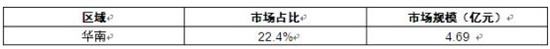 2019年,华南地区智能学习灯市场规模约为4.69亿元,占全国市场比例的22.4%。