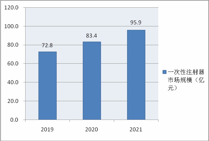 中国一次性注射器行业发展也面临较大的困境。一次性注射器是在医疗活动中使用频率较高,几乎在医院各个科室均能用到。对于一次性注射器产品的生产、使用等,国家的监管也比较严格,对整个行业的发展来说,政策会起到较大的导向作用。由于经过多年的发展,国内一次性注射器市场已经相对成熟,行业内企业数量较多,并且由于进入门槛相对较低,因此目前国内一次性注射器市场存在较为严重的同质化问题,市场竞争也异常激烈。此外,由于近年来我国一次性注射器生产能力快速扩张,国内产能消化成为目前行业发展的重大障碍。面对当前国内一次性注射器行业产能过剩、产品同质化严重等发展现状,国家也采取了一定的措施,对新进企业的准入门槛标准有所提高,在没有创新技术的情况下,一般不予批准。另外,对于目前行业内的企业,国家也在开展了一系列的整顿措施,淘汰落后产能,促进行业的转型升级。近几年中国一次性使用无菌注射器的市场规模呈现不断增长的趋势。2019年中国一次性注射器市场规模约为72.8亿元,到2021年预计增长至约109.7亿元的水平。
