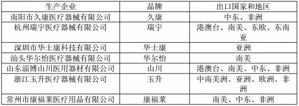 图表:我国出口一次性注射器部分企业、品牌及出口国家和地区的情况