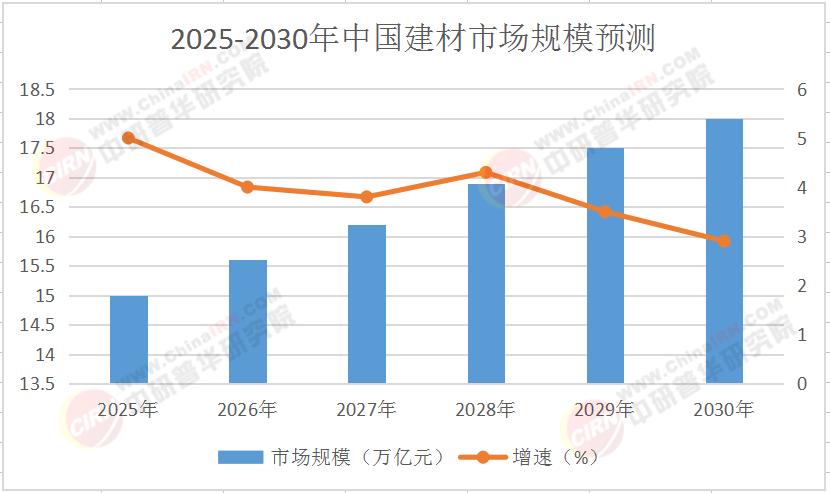 根据中研普华产业研究院《2025-2030年建材市场发展现状调查及供需格局分析预测报告》预测,2025年中国建材市场规模预计将突破15万亿元,但增速将放缓至5%以下。展望未来,到2030年,中国建材市场规模有望达到18万亿元,形成以绿色建材、智能建材、循环经济建材为核心的新格局。以下是一个简化的市场规模预测表格,展示了未来几年中国建材市场的增长趋势: