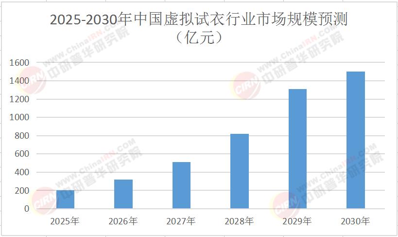 根据中研普华产业研究院《2025-2030年中国虚拟试衣行业深度调研与发展前景预测研究报告》预测,2025年中国虚拟试衣市场规模预计将突破200亿元,年复合增长率超50%。展望未来,到2030年,中国虚拟试衣市场规模有望达到1500亿元,形成以技术服务、数据运营、广告营销、元宇宙经济为核心的新格局。以下是一个简化的市场规模预测表格,展示了未来几年中国虚拟试衣市场的增长趋势: