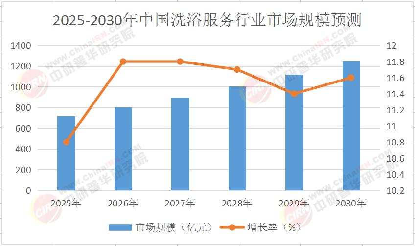 2025年的中国洗浴服务行业正经历着从传统刚需向品质消费的蜕变。根据中研普华产业研究院发布的《2025-2030年中国洗浴服务行业市场现状分析及发展前景预测报告》显示,行业市场规模即将突破700亿元,预计2030年将跨越2000亿元大关,年复合增长率稳定在10%-12%区间。这一增长动能主要源自三大驱动因素: