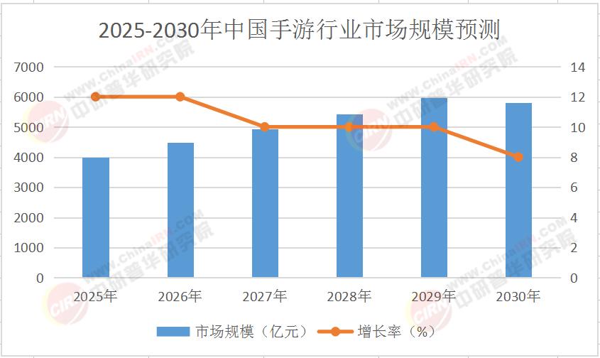 根据中研普华产业研究院《2025-2030年中国手游行业市场调查与投资建议分析报告》预测,2025-2030年中国手游行业市场规模将保持稳健增长,具体数据如下表所示: