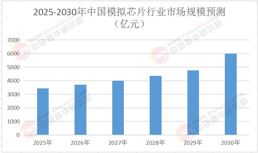 表1 2025 - 2030年中国模拟芯片行业市场规模预测(亿元)