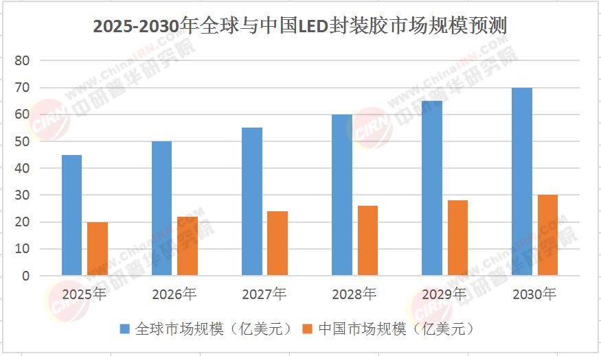 以下是2025-2030年全球与中国LED封装胶市场规模预测表: