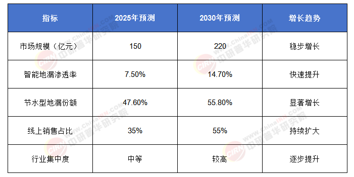 2025-2030年中国地漏行业关键指标数据预测