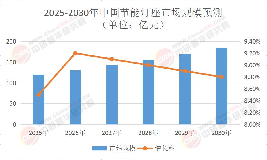 根据中研普华产业研究院发布的《2025-2030年中国节能灯座行业市场调查分析与发展趋势预测研究报告》显示,2025年中国节能灯座市场规模预计突破120亿元,年复合增长率(CAGR)达8.5%。这一增长主要得益于三大核心驱动力: