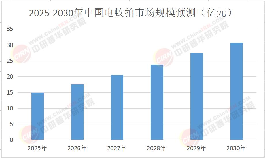 2025年,中国电蚊拍行业呈现“量价齐升”态势。一方面,夏季高温与城市化进程加速蚊虫繁殖,驱动基础需求增长;另一方面,智能电蚊拍均价提升至传统产品的2倍以上,推动市场规模结构性扩容。根据中研普华《2025-2030年中国电蚊拍行业市场全景调研及投资价值评估研究报告》预测,2025-2030年行业复合增长率将达14%,至2030年市场规模有望突破30亿元。