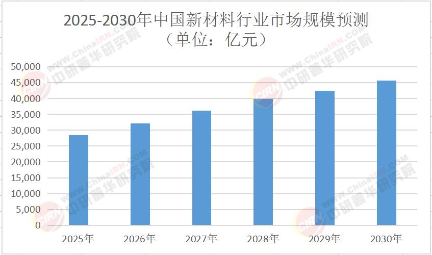 2025-2030年中国新材料行业市场规模预测(单位:亿元)