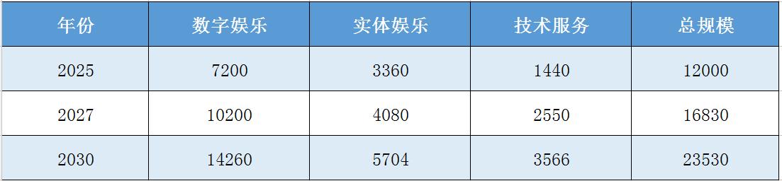 表:2025-2030年中国互动娱乐细分市场规模预测(单位:亿元)
