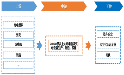 图表:240KW及以上大功率直流充电设备产业链结构示意图