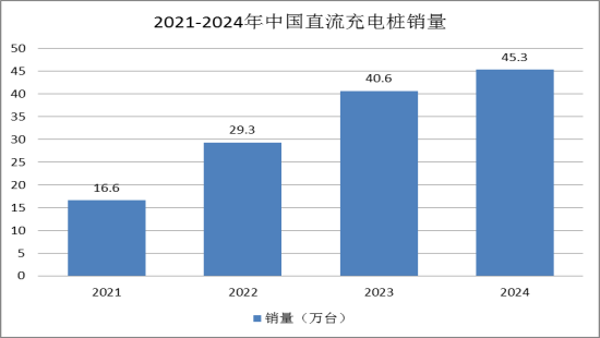 中研普华产业研究院数据显示,2024年中国直流充电桩销量约为45.3万台,同比增长11.58%。