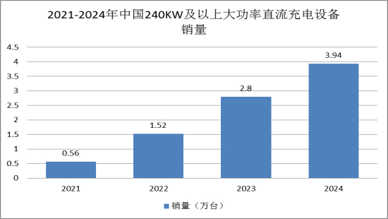 中研普华产业研究院数据显示,2024年中国240KW及以上大功率直流充电设备销量约为3.94万台,同比增长40.7%。