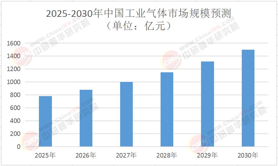 表:2025-2030年中国工业气体市场规模预测(单位:亿元)