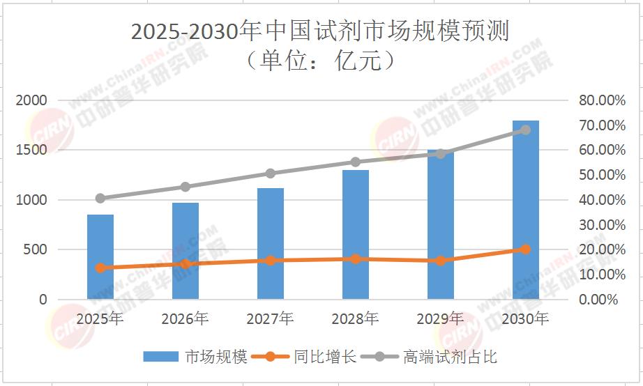 2025-2030年中国试剂市场规模预测(单位:亿元)