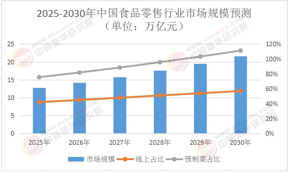 “十四五”期间,中国食品零售行业市场规模从2020年的8.2万亿元增长至2025年的12.8万亿元,复合增长率达9.5%,远超全球平均水平。细分赛道呈现“冰火两重天”:生鲜电商增速达28%,而传统大卖场客流量年均下降7%;预制菜市场规模从2020年的1500亿元跃升至2025年的4300亿元,成为行业最大增长极。根据中研普华产业研究院发布的《“十四五”食品零售行业发展形势研究及“十五五”规划期内企业投资趋势预测报》,2025年线上渠道贡献率首次超过线下,社区团购、即时零售等新模式占比达35%。