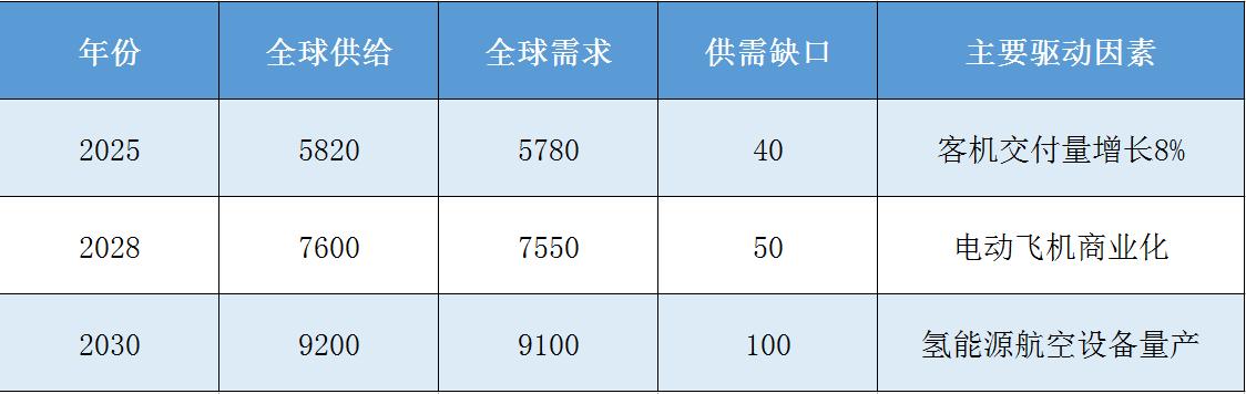 中研普华《2025-2030年航空设备市场发展现状调查及供需格局分析预测报告》指出,2025-2030年供需缺口将主要出现在新兴技术领域,如电动推进系统、航空级电池等,这些领域的产能扩张速度较传统设备滞后约18个月。