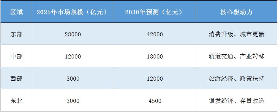 区域化协同:形成10-15个国家级商业中心,跨区域消费占比超30%