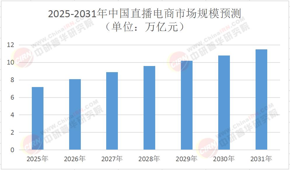 表:2025-2031年中国直播电商市场规模预测(单位:万亿元)