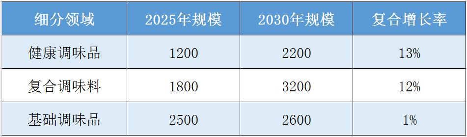 表:2025-2030年中国调味品细分市场规模预测(单位:亿元)