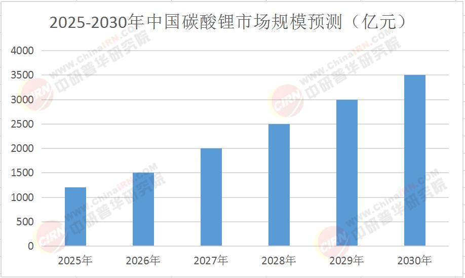表:2025-2030年中国碳酸锂市场规模预测(亿元)