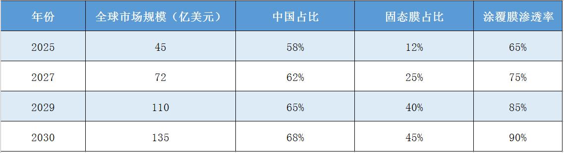 在电池安全成为核心诉求的背景下,涂覆隔膜正从"可选配置"变为"标准配置"。中研普华研究显示,到2030年,涂覆膜渗透率将达70%,其中陶瓷涂覆膜占比超50%。这种技术演进在动力电池领域尤为明显。