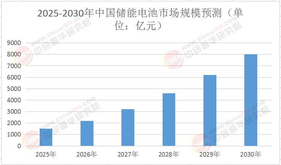 根据中研普华产业研究院《2025-2030年中国储能电池行业市场发展现状分析及投资前景预测研究报告》预测,到2030年: