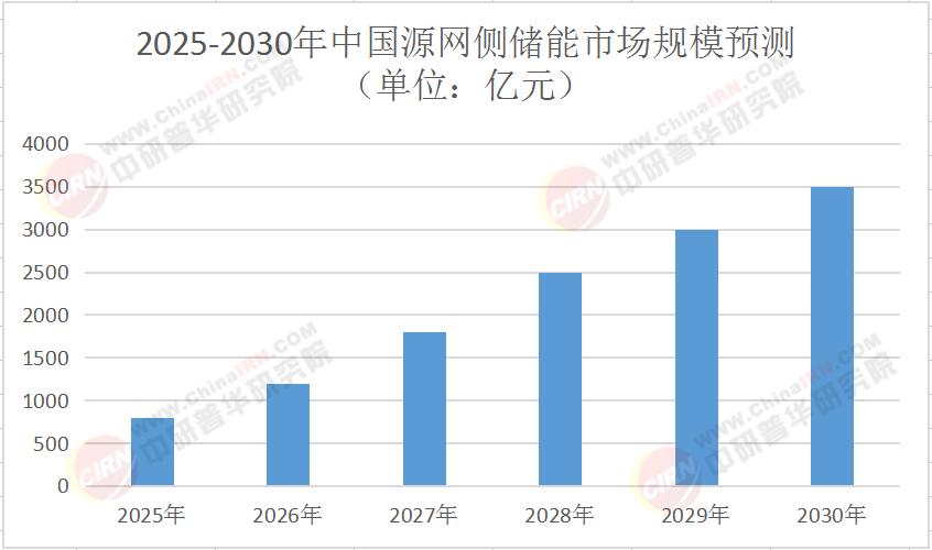 中国源网侧储能市场正经历“量价齐升”的爆发期。根据中研普华产业研究院《2025-2030年中国源网侧储能行业市场发展现状分析及投资战略规划咨询报告》预测,市场规模将从2025年的800亿元增长至2030年的3500亿元,年复合增长率达30%。这一增长的核心动能来自三大领域: