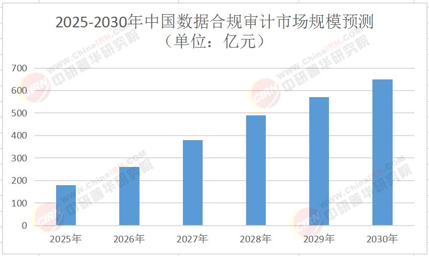 根据中研普华产业研究院发布的《2025-2030年中国数据合规审计行业市场发展现状及投资趋势咨询报告》显示,2025年中国数据合规审计市场规模达180亿元,预计到2030年将突破650亿元,年复合增长率超28%。这一增速远超传统IT审计领域,主要得益于三大驱动力: