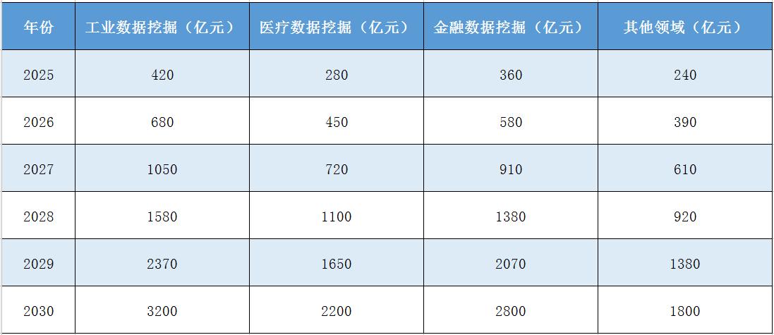 中研普华产业研究院《2025-2030年中国数据资产挖掘行业市场现状与发展趋势及前景预测报告》预测,到2030年将形成三大万亿级应用场景: