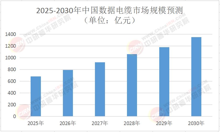 2025-2030年中国数据电缆市场规模预测(单位:亿元)