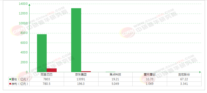 图表:2025年中国AI电子商务行业主要龙头企业营收及净利润比较