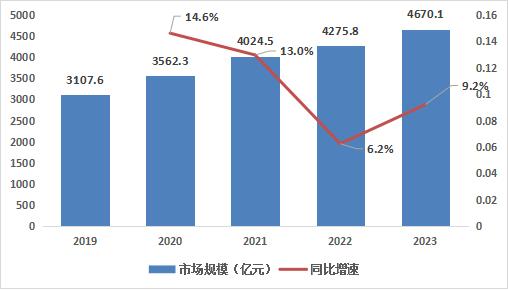 图:2019-2023年中国检验检测行业市场规模