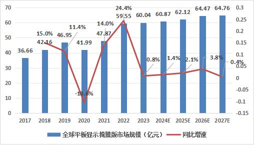 图:2017-2027年全球平板显示掩膜版行业市场规模及预测