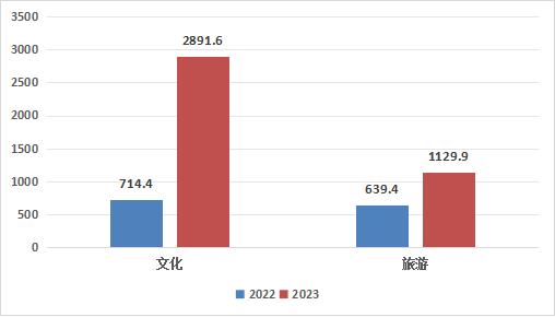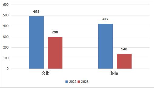 图:2022-2023年中国文化产业和旅游产业在主要资本市场融资金额(单位:亿元)