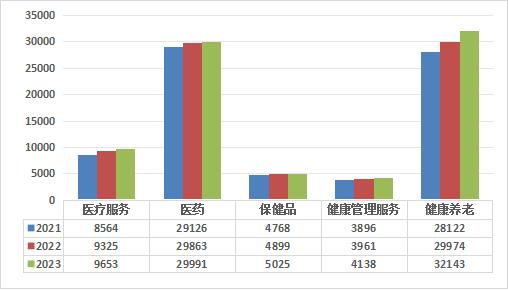 图:2021-2023年中国医疗健康产业规模(单位:亿元)