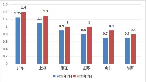 图:2023年国内多地区峰谷价差较2022年呈现扩大趋势(元/kwh)