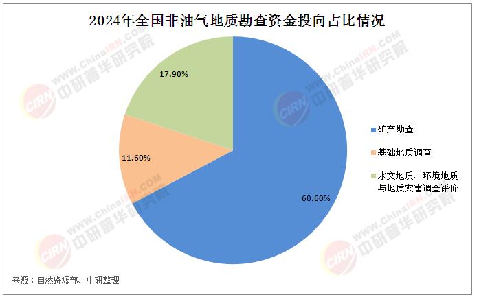 自然资源部办公厅印发的《2024年全国非油气地质勘查统计年报》显示:2024年全国非油气地质勘查投入资金229.57亿元,同比增长14.4%,连续4年实现正增长。从2024年全国非油气地质勘查资金投向看,矿产勘查为139.17亿元,占总量的60.6%,同比增长18.4%。