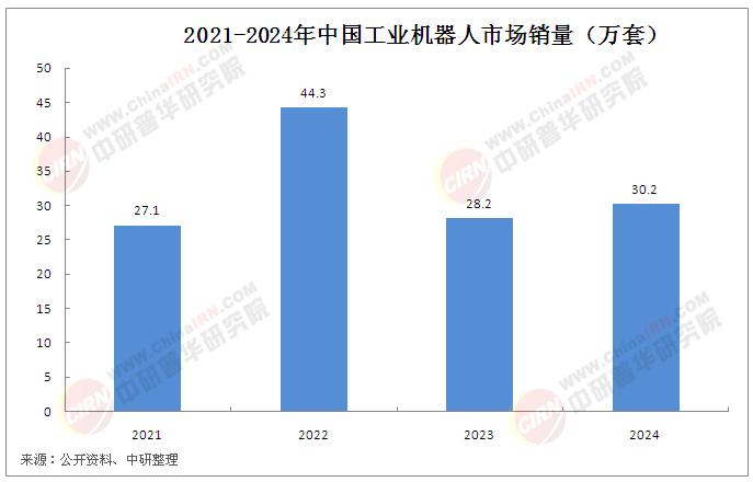 从2025世界机器人大会新闻发布会上获悉:2024年,我国工业机器人市场销量达30.2万套,连续12年保持全球最大工业机器人市场。