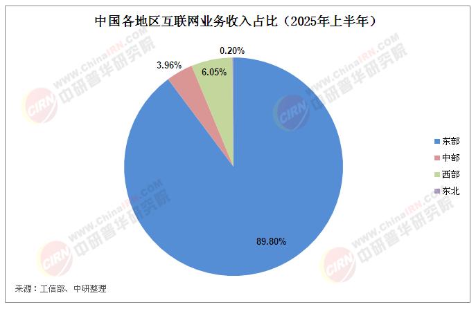 分地区来看,东部地区收入增速领先,西部地区互联网业务收入增速放缓。上半年,东部地区完成互联网业务收入8633亿元,同比增长5.3%,高于全国增速2.2个百分点,占全国互联网业务收入的89.8%。