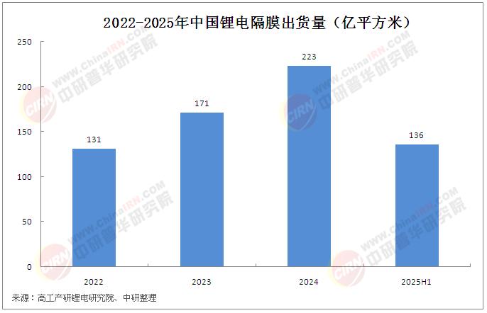 在全球新能源产业的浪潮中,锂电池作为核心能量载体,其性能直接决定着新能源汽车、储能等领域的发展高度。隔膜作为锂电池四大关键材料之一,被喻为“心脏之瓣膜”,是隔离正负极、防止短路同时允许锂离子通过的核心组件,其技术壁垒在产业链中最高,曾长期被日、韩、欧美企业垄断。中国锂电池隔膜产业起步于技术封锁的困境,通过持续创新实现了从依赖进口到全球主导的逆袭,如今已成为全球产量与技术创新的核心力量,支撑着新能源产业链的自主可控与全球竞争力。据GGII调研显示,中国锂电隔膜出货量223亿平米,同比增长30%。其中湿法隔膜出货173亿平米,干法隔膜出货50亿平米。