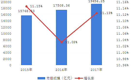 截止2017年末,根据现代农业各行业的发展规模来看,我国现代农业的市场总规模为19456.25亿元,增长幅度为11.13%。
